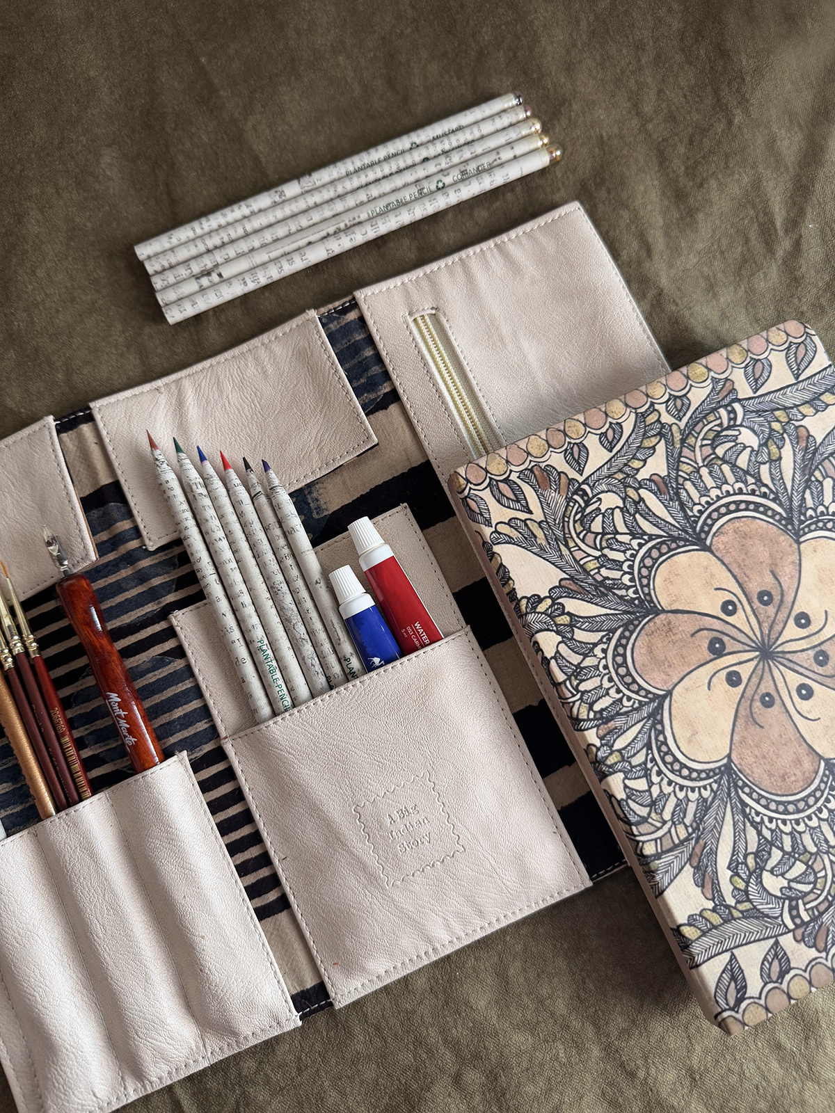 I bought black ajrakh bag, it's super stylish and has a lot of space .. laptop, charger, mouse, specs, mobile charger, watter bottle, small notebook, money pouch and a lot more tiny bits could fit very easily..!! goes well with Indian as well as western outfits. .. great product!!